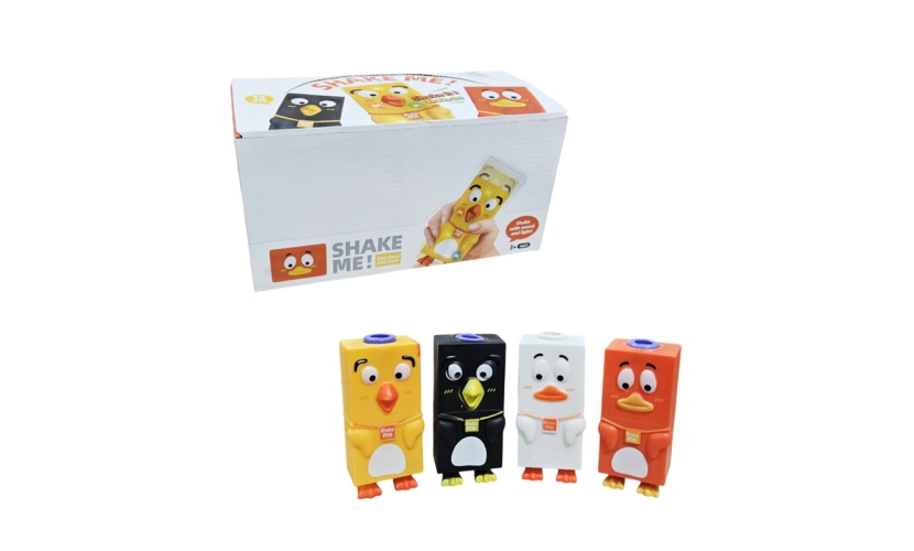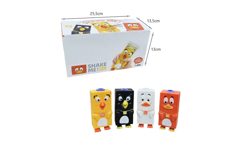 Ανακαλύψτε το πιο διασκεδαστικό παιχνίδι χειρός για παιδιά άνω των 3 ετών! Το "Shake Me!" κοτοπουλάκι και παπάκι ενεργοποιείται με το κούνημα και προσφέρει φώτα και ήχους που ενθουσιάζουν. Ιδανικό για στιγμές χαλάρωσης, αποσυμπίεσης και δημιουργικού παιχνιδιού. Ένα χαριτωμένο δώρο που θα κρατήσει τα μικρά χεράκια απασχολημένα και τα χαμόγελα φωτεινά!