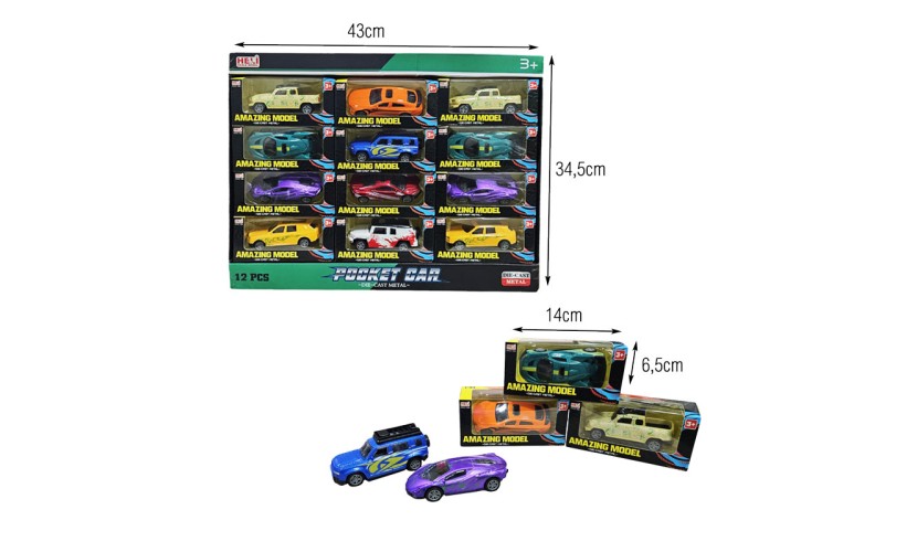 Το σετ περιλαμβάνει 12 μεταλλικά αυτοκινητάκια τύπου die-cast σε διάφορα χρώματα και σχέδια, ιδανικά για παιδιά άνω των 3 ετών. Προσφέρουν ατελείωτη διασκέδαση και αντοχή στο παιχνίδι.
