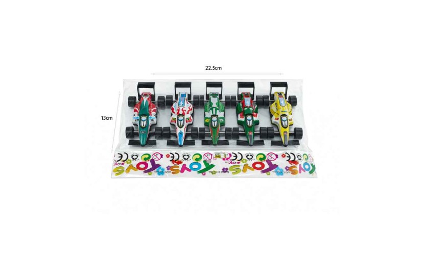 Σετ παιδικών αγωνιστικών αυτοκινήτων τύπου Formula, ιδανικό για ατελείωτο παιχνίδι και διασκέδαση. Περιλαμβάνει πολλαπλά αυτοκινητάκια με έντονα χρώματα και αγωνιστικό σχεδιασμό, που τραβούν το ενδιαφέρον των παιδιών.