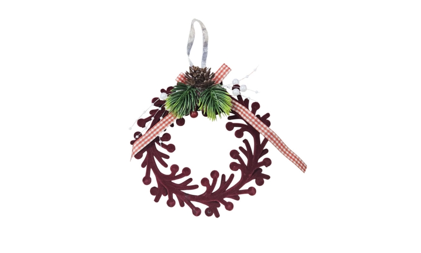 Διακοσμημένο με πράσινα φυλλαράκια, κουκουνάρι, κόκκινη καρό κορδέλα και λευκές πέρλες, προσθέτει μια φυσική και κομψή πινελιά σε κάθε γωνιά του σπιτιού.