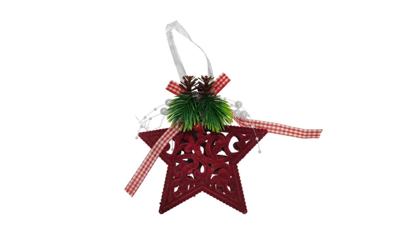 Διακοσμημένο με πράσινα φυλλαράκια, κουκουνάρι, κόκκινη καρό κορδέλα και λευκές πέρλες, προσθέτει μια φυσική και κομψή πινελιά σε κάθε γωνιά του σπιτιού.