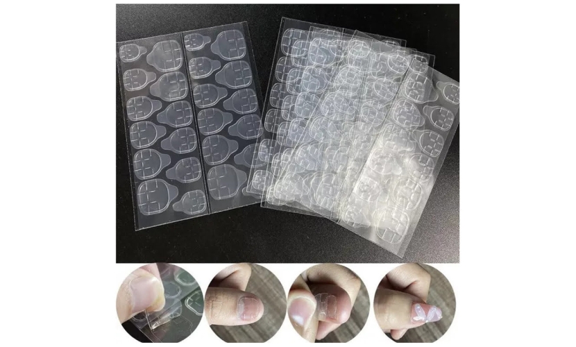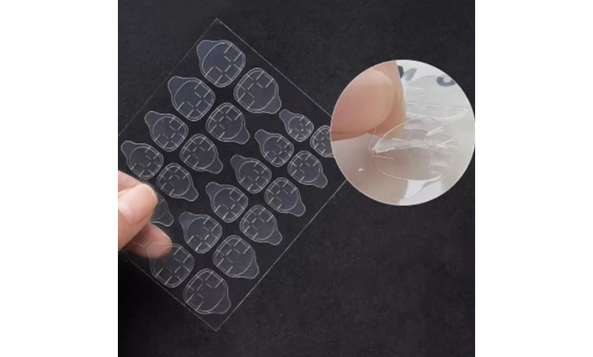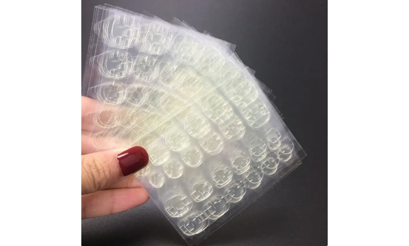 Πρόκειται για ένα αυτοκόλλητο ζελέ, το οποίο είναι λίγο παχύτερο από το συνηθισμένο αυτοκόλλητο, και είναι πιο ιξώδες και πιο σφριγηλό. Διαρκεί 1-2 ημέρες. Οι γλωττίδες νυχιών διπλής όψης είναι ισχυρά συγκολλητικές και αδιάβροχες, δεν είναι εύκολο να πέσουν ψεύτικα καρφιά. Ταυτόχρονα, είναι εύκολο να αφαιρεθούν βυθίζοντας τα σε ζεστό νερό αναμεμιγμένο με λίγο σαπούνι για αρκετά λεπτά, έτσι ώστε να μπορείτε να επαναχρησιμοποιήσετε τα ψεύτικα νύχια σας, είναι ιδανικά για προσωρινά νύχια.