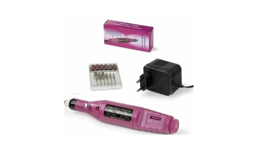 Ημιεπαγγελματικός τροχός νυχιών μεταβλητής ταχύτητας Rotary Detail Carver Λειτουργεί με σύνδεση σε ηλεκτρικό ρεύμα και έχει καλώδιο και εύκολη εφαρμογή. Ελαφριά και εργονομική σχεδίαση. Διακόπτης ελέγχου ταχύτητας: 3000 έως 20000 r.p.m. Μέγεθος: Περίπου: 16cm. Τάση: 100V – 240V / 50Hz. Θερμοκρασία λειτουργίας: 0-50 βαθμοί κελσίου. Το πακέτο περιλαμβάνει: μετασχηματιστή ρεύματος, 6 κεφαλές – εργαλεία. Εγχειρίδιο χρήσης στα Αγγλικά. DC 9V