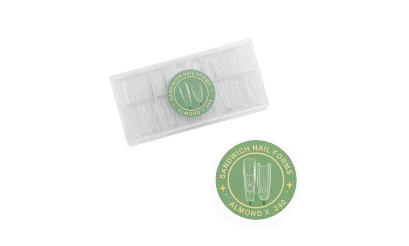 Επαγγελματικές φόρμες νυχιών τύπου Sandwich σε σχήμα Almond, ιδανικές για επιμήκυνση με gel, polygel ή ακρυλικό. Το σετ περιλαμβάνει 240 τεμάχια σε πρακτικό διάφανο κουτί αποθήκευσης για εύκολη οργάνωση και επιλογή μεγέθους. Ο σχεδιασμός sandwich προσφέρει σταθερότητα και σωστή εφαρμογή επάνω στο φυσικό νύχι, διευκολύνοντας τη δημιουργία συμμετρικού και καλαίσθητου αποτελέσματος. Το σχήμα Almond είναι ιδανικό για κομψό και θηλυκό τελείωμα, κατάλληλο τόσο για καθημερινές όσο και για πιο εντυπωσιακές εμφανίσεις. Χαρακτηριστικά: • Ποσότητα: 240 τεμάχια• Σχήμα: Almond• Κατάλληλες για gel, polygel και ακρυλικό• Επαναχρησιμοποιούμενες• Διαφανές κουτί αποθήκευσης (22 x 11cm περίπου) Ιδανικές για επαγγελματίες τεχνίτες νυχιών αλλά και για χρήση στο σπίτι, προσφέροντας ακρίβεια, σταθερότητα και άψογο αποτέλεσμα σε κάθε εφαρμογή.