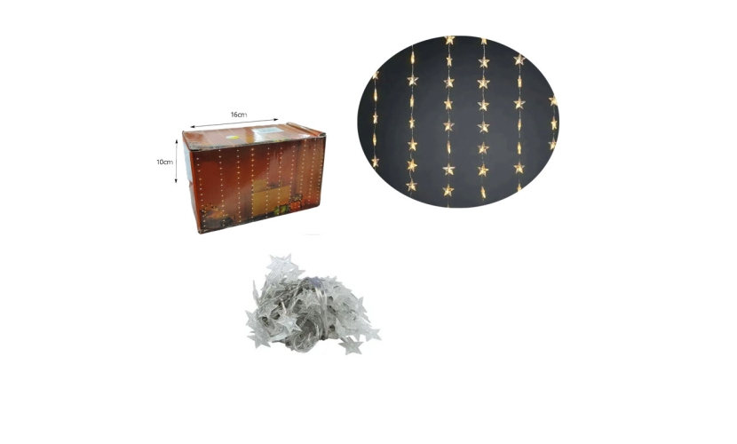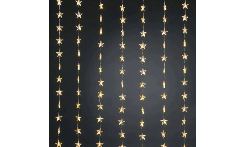 Χριστουγεννιάτικα Λαμπάκια Κουρτίνα Με Αστεράκια LED Θερμό Χρώμα με Διαφανές Καλώδιο 3m x 1m 80Led- Christmas lights