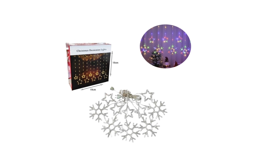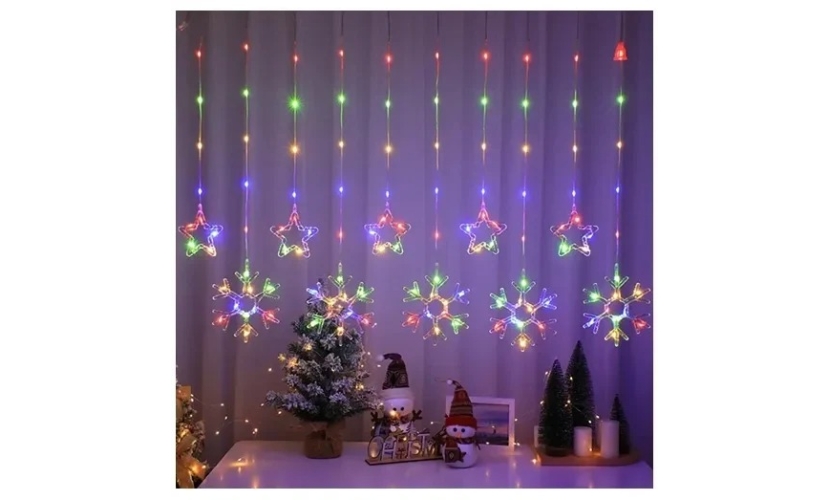 Χριστουγεννιάτικα Φωτάκια Κουρτίνα Χιονονιφάδες & Αστεράκια Πολύχρωμα 3M 120Led- Christmas decoration lights RGB