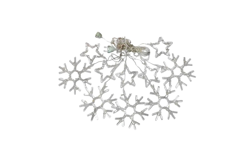 5 Χιονονιφάδες και 5 αστεράκια, μήκους 3 μέτρων και δυνατότητα επέκτασης, που θα φωτίσουν τον χώρο σας με ρυθμιστή εναλλαγών για να δημιουργήσετε την πιο όμορφη Χριστουγεννιάτικη ατμόσφαιρα. Τα πλεονεκτήματα των λαμπτήρων LED • Χαμηλή κατανάλωση ενέργειας συγκριτικά με άλλες τεχνολογίες φωτισμού • Μεγάλη διάρκεια ζωής • Υψηλή αποδοτικότητα αφού διατηρούν το 100% της απόδοσής τους μέχρι το τέλος • Υψηλό επίπεδο φωτεινότητας και έντασης • Μηδενική εκπομπή ακτινοβολίας – φιλικοί προς το περιβάλλον • Χαμηλή εκπομπή θερμότητας • Δεν “καίγονται” όταν υπάρχουν μεταπτώσεις στο δίκτυο ηλεκτροδότησης • Είναι αντιεκρηκτικοί – οι πλακέτες δεν εκρήγνυνται.