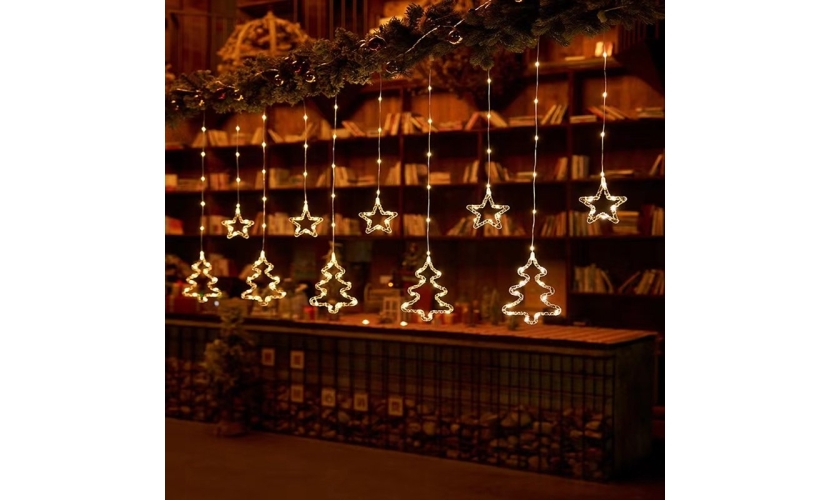 Χριστουγεννιάτικα Φωτάκια Κουρτίνα Δεντράκια & Αστεράκια Θερμό Χρώμα 10L 3M - Christmas decoration lights warm light