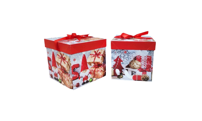 Χριστουγεννιάτικο πλαστικό κουτί 15x15x15cm - Christmas plastic box Με κορδέλα. Προσοχή: Το προϊόν διατίθεται σε διάφορα χρώματα και σχέδια και η επιλογή γίνεται τυχαία, βάσει διαθεσιμότητας.