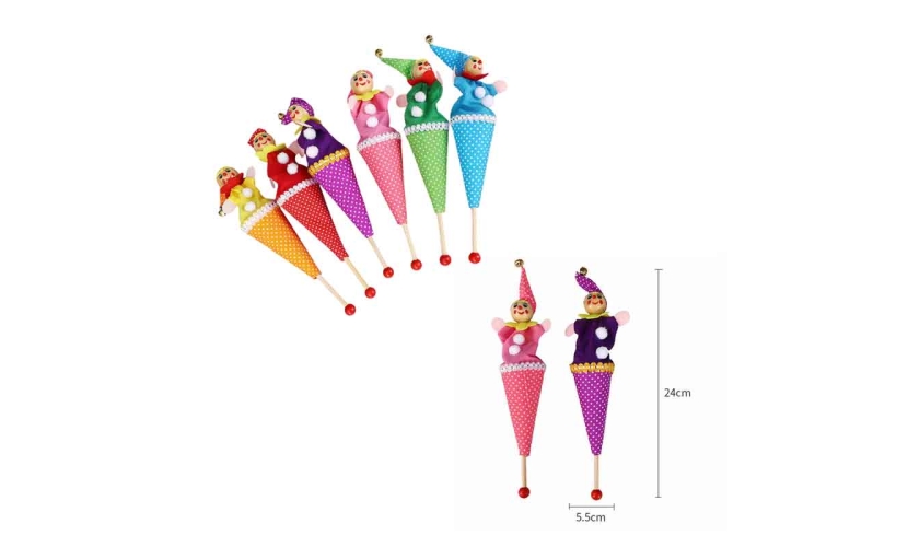 Φιγούρες κλόουν που μπαινοβγαίνουν σε χωνί. Προσοχή: Το προϊόν διατίθεται σε διάφορα χρώματα και σχέδια και η επιλογή γίνεται τυχαία, βάσει διαθεσιμότητας. Η τιμή αφορά ένα (1) τεμάχιο και όχι το σύνολο των προϊόντων που απεικονίζονται στη φωτογραφία.