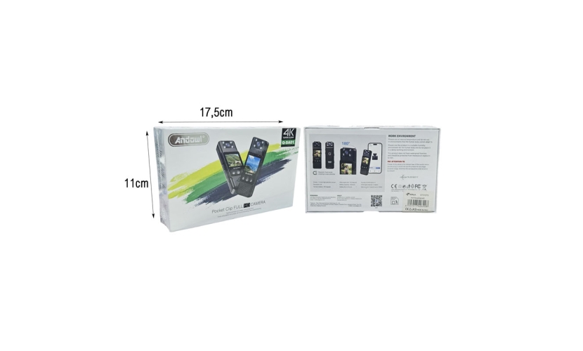 Η φορητή κάμερα clip Andowl Q-SA01 είναι ιδανική για διακριτική καταγραφή βίντεο και φωτογραφιών σε ανάλυση Full HD. Διαθέτει περιστρεφόμενο φακό 180°, ενσωματωμένη οθόνη για άμεση προβολή και λειτουργία νυχτερινής λήψης. Η συσκευή είναι ελαφριά, εύκολη στη χρήση και ιδανική για προσωπική ασφάλεια, επαγγελματικές ανάγκες ή ταξίδια. Συμβατή με κάρτες microSD για αποθήκευση και υποστηρίζει σύνδεση με κινητό τηλέφωνο μέσω εφαρμογής.