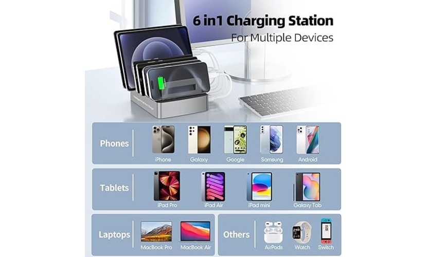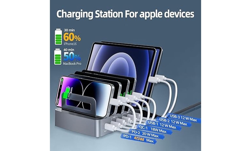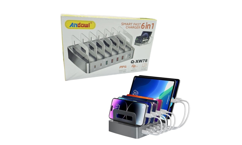 Ο σταθμός φόρτισης Andowl Q-XW78 είναι η ιδανική λύση για όσους θέλουν να φορτίζουν ταυτόχρονα πολλές συσκευές με μέγιστη ταχύτητα και ασφάλεια. Διαθέτει 6 θύρες φόρτισης με προηγμένες τεχνολογίες PD 45W, PD 20W, QC 18W και USB 12W, καλύπτοντας πλήρως τις ανάγκες για κινητά, tablets, laptops και αξεσουάρ.Η ενσωματωμένη τεχνολογία PPS εξασφαλίζει βέλτιστη παροχή ρεύματος ανάλογα με τη συσκευή, ενώ η προστασία από υπέρταση, υπερθέρμανση και βραχυκύκλωμα προσφέρει απόλυτη ασφάλεια. Ιδανικό για σπίτι, γραφείο ή επαγγελματική χρήση.