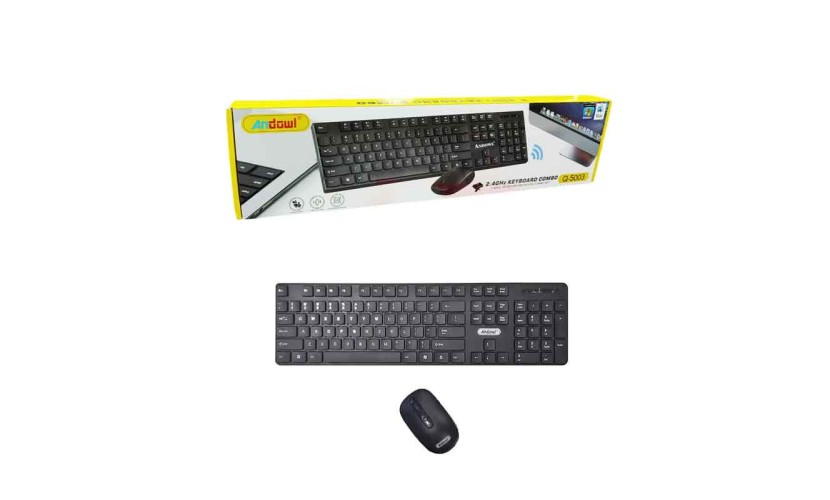 Πρακτικό και αξιόπιστο σετ πληκτρολόγιο με ποντίκι Andowl Q-5003 για άνετη εργασία και ψυχαγωγία χωρίς καλώδια. Με ασύρματη σύνδεση 2.4GHz και δέκτη USB, προσφέρει σταθερή λειτουργία σε απόσταση έως 10 μέτρων.