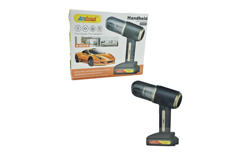 Το ασύρματο σκουπάκι χειρός Andowl 24V είναι η ιδανική λύση για γρήγορο και αποτελεσματικό καθάρισμα στο αυτοκίνητο ή το σπίτι. Διαθέτει ισχυρή απορρόφηση για σκόνη, τρίχες και υπολείμματα, ενώ το επαναχρησιμοποιούμενο φίλτρο του μπορεί να πλυθεί εύκολα με νερό, εξασφαλίζοντας μακροχρόνια χρήση.