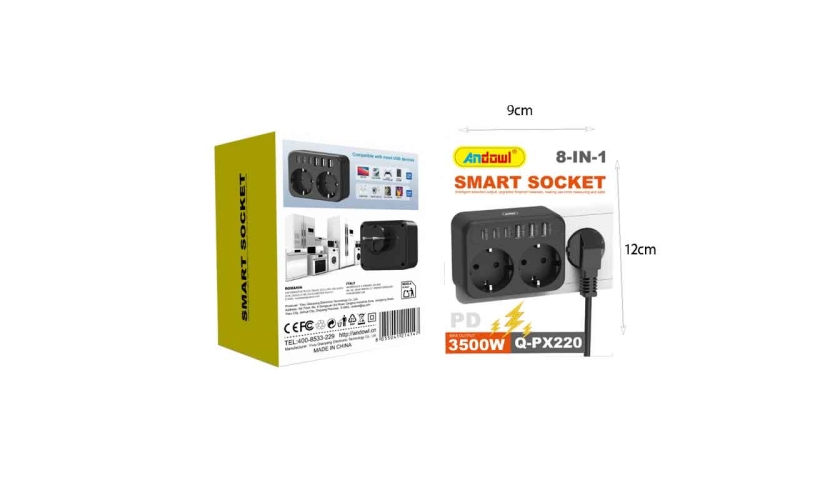 Το Andowl Q-PX220 είναι ένα έξυπνο πολύπριζο 8 σε 1 με ισχύ έως 3500W, ιδανικό για το σπίτι ή το γραφείο. Διαθέτει 2 πρίζες AC και 6 θύρες USB, ώστε να φορτίζετε και να τροφοδοτείτε πολλές συσκευές ταυτόχρονα με απόλυτη ασφάλεια. Υποστηρίζει μέγιστη απόδοση 230V/10A και προσφέρει προστασία από υπερφόρτωση και υπερθέρμανση.