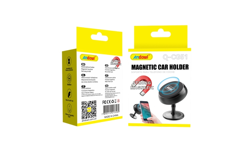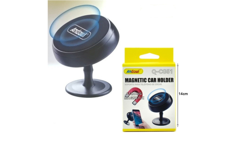 Βάση κινητού αυτοκινήτου Q-CG51 της εταιρείας Andowl. Η βάση στηρίζεται με αυτοκόλλητη ταινία άρα μπορεί να τοποθετηθεί στο ταμπλό του αυτοκινήτου. Η στήριξη της συσκευής στη βάση γίνεται με μαγνήτη τον οποίο μπορείτε να κολλήσετε είτε στη συσκευή σας είτε στη θήκη της. Διαθέτει περιστροφή για πιο εύκολη ρύθμιση της επιθυμητής θέσης της συσκευής.