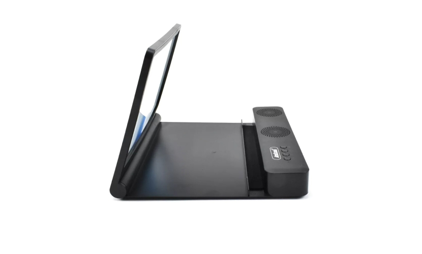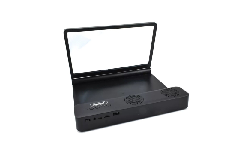 Ο ενισχυτής οθόνης με ηχείο Bluetooth σας χαρίζει μια 3D παρακολούθηση και την αίσθηση του κινηματογράφου στο σπίτι σας! Διαθέτει στερεοφωνικό ήχο και μεγεθύνει την οθόνη του τηλεφώνου σας 1,5 φορά. Τοποθετήστε το τηλέφωνο στη βάση και απολαύστε οτιδήποτε επιθυμείτε. Μοντέρνος, ελαφρύς και αναδιπλούμενος για να τον έχετε παντού μαζί σας. Επαναφορτίζεται με καλώδιο USB και διαθέτει ενσωματωμένη μπαταρία. Βοηθά στην ευκρίνεια της οθόνης και μειώνει την κόπωση στα μάτια. Bluetooth: 5.0. Ισχύς εξόδου: 5W. Μπαταρία: 18650. Τάση εισόδου: 3V – 5.5V.