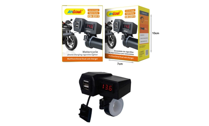 Andowl Φορτιστής Μοτοσυκλέτας με Θύρες 2xUSB CD-3311 - Motorcycle Phone Charging Cigarette Lighter