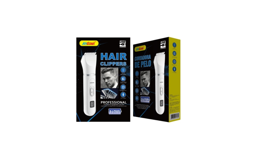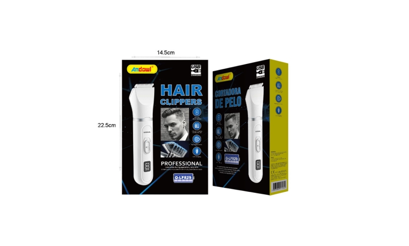Κουρευτική μηχανή της εταιρίας Andowl, κατάλληλη για χρήση σε περιοχές όπως τα μαλλιά, τα γενιά και το σώμα. Λειτουργεί με μπαταρία.