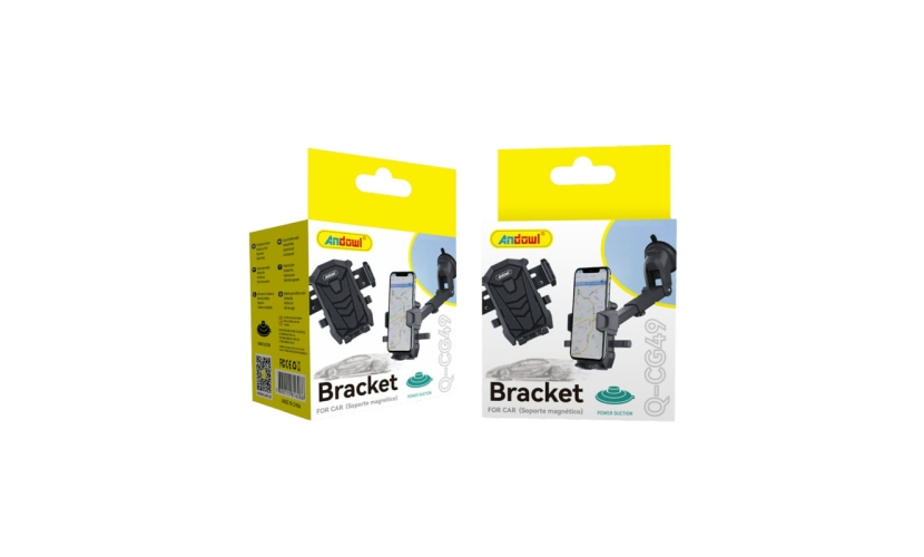 Βάση κινητού αυτοκινήτου της εταιρείας Andowl. Η βάση στηρίζεται με βεντούζα άρα μπορεί να τοποθετηθεί στο ταμπλό ή το παρμπρίζ του αυτοκινήτου. Η στήριξη της συσκεύης στη βάση γίνεται με ρυθμιζόμενα άγκιστρα. Διαθέτει περιστροφή για πιο εύκολη ρύθμιση της επιθυμητής θέσης της συσκευής.