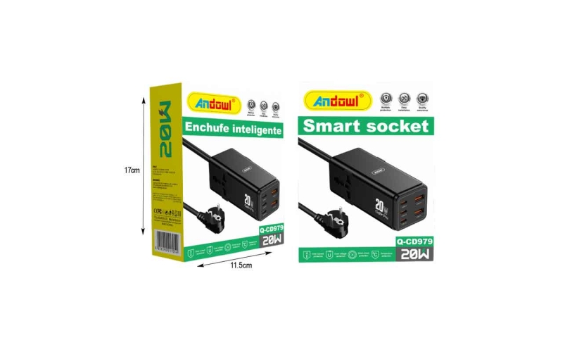 Andowl Πολύπριζο 3 Θύρες Type-C και 2 USB Θύρες Q-CS979 - Smart Socket