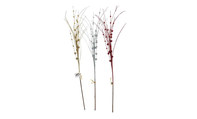 Λαμπερό χριστουγεννιάτικο κλαδί με γκλίτερ και διακοσμητικές μπάλες, ύψους 74cm. Διατίθεται σε χρυσό, ασημί και κόκκινο χρώμα. Ιδανικό για στολισμό δέντρου, βάζου ή γιορτινών συνθέσεων. Προσοχή: Το προϊόν διατίθεται σε διάφορα χρώματα και σχέδια και η επιλογή γίνεται τυχαία, βάσει διαθεσιμότητας. Η τιμή αφορά ένα (1) τεμάχιο και όχι το σύνολο των προϊόντων που απεικονίζονται στη φωτογραφία.