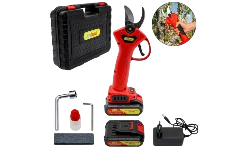 Το ηλεκτρικό κλαδευτήρι Andowl Q-JD25 προσφέρει επαγγελματικό κλάδεμα με ευκολία και ακρίβεια, χάρη στον ισχυρό κινητήρα και την επαναφορτιζόμενη μπαταρία 48V. Με ικανότητα κοπής έως 25mm, είναι ιδανικό για αμπελώνες, ελαιώνες και γενική περιποίηση δέντρων και θάμνων. Περιλαμβάνει δύο μπαταρίες για μεγαλύτερη αυτονομία, καθώς και πρακτική βαλίτσα μεταφοράς.
