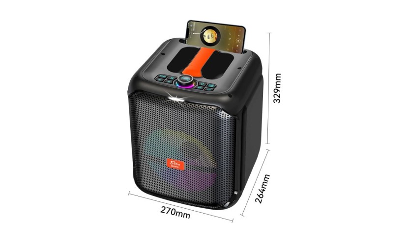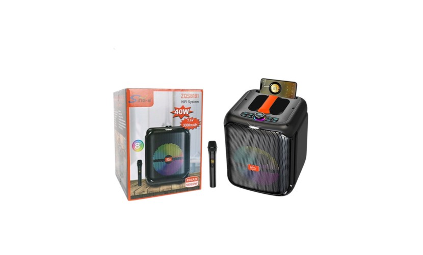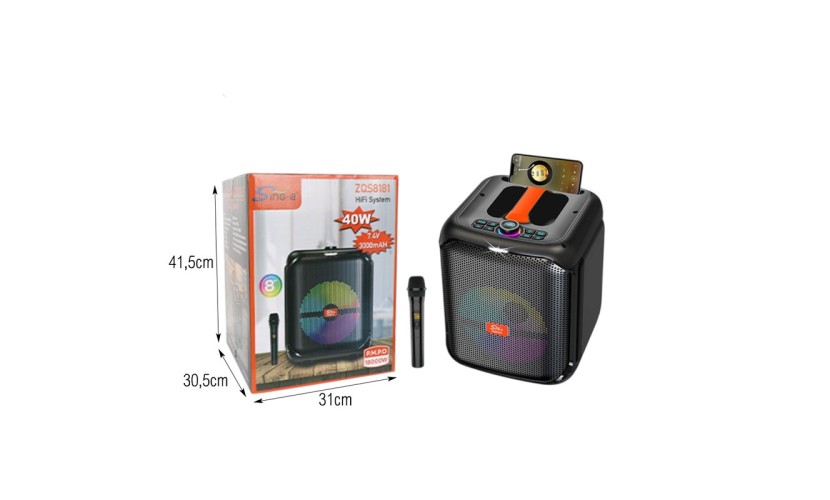 Φορητό ηχείο karaoke Bluetooth ισχύος 40W, σχεδιασμένο για δυναμικό ήχο και διασκέδαση σε κάθε χώρο. Διαθέτει ενσωματωμένο φωτισμό LED που συγχρονίζεται με τη μουσική, δημιουργώντας εντυπωσιακή ατμόσφαιρα σε πάρτι, συγκεντρώσεις και εκδηλώσεις.