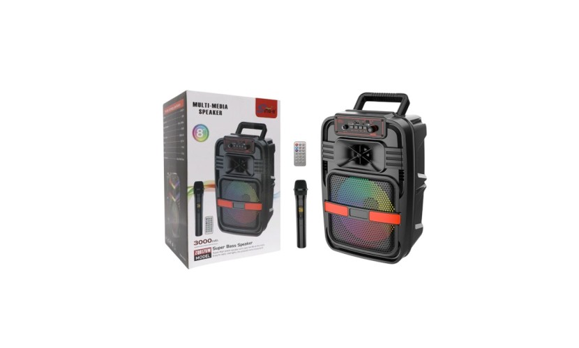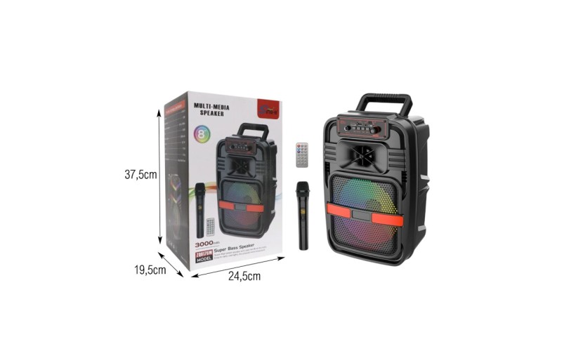 Φορητό multimedia ηχείο Bluetooth, ιδανικό για μουσική, karaoke και διασκέδαση στο σπίτι ή σε εξωτερικούς χώρους. Διαθέτει ηχείο 8 ιντσών με ισχύ εξόδου 20W, προσφέροντας καθαρό και δυνατό ήχο με ενισχυμένα μπάσα.