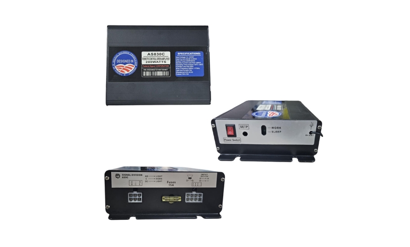 Η Signal Division AS9C είναι ένα ολοκληρωμένο σύστημα ηλεκτρονικής σειρήνας για οχήματα, σχεδιασμένο για επαγγελματική χρήση (ασφαλείας, συνοδείας, ειδικών οχημάτων). Περιλαμβάνει ενισχυτή 200W, ηχείο υψηλής έντασης, και ασύρματο τηλεχειριστήριο, προσφέροντας μέγιστη απόδοση, εύκολη εγκατάσταση και λειτουργικότητα από απόσταση.