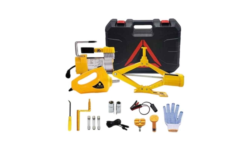 Αντιμετώπισε κάθε έκτακτη ανάγκη στον δρόμο με αυτό το πλήρες σετ ηλεκτρικού γρύλου και αεροσυμπιεστή! Ιδανικό για γρήγορη και ασφαλή ανύψωση του οχήματος και φούσκωμα ελαστικών, το σετ συνοδεύεται από όλα τα απαραίτητα εργαλεία και αποθηκεύεται εύκολα στο ανθεκτικό βαλιτσάκι μεταφοράς (46x36cm).