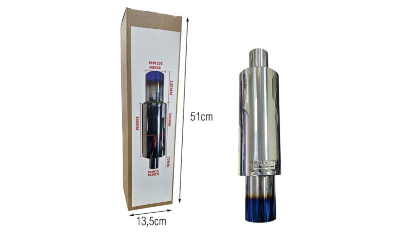 Το τελικό καζανάκι εξάτμισης προσφέρει εντυπωσιακή εμφάνιση και βελτιωμένη ηχητική απόδοση στο όχημά σας. Η κομψή μεταλλική επιφάνεια και το μπλε καμένο φινίρισμα στο στόμιο δίνουν σπορ χαρακτήρα και ανανεώνουν την αισθητική της εξάτμισης.