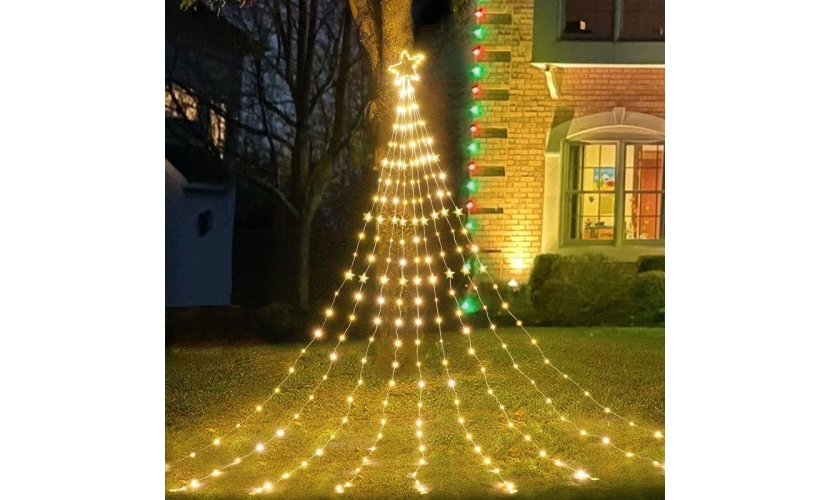 Χριστουγεννιάτικο δέντρο από φωτάκια θερμό χρώμα LED 2.5m - Star waterfall light Ρυθμίζεται και αποθηκεύεται πολύ εύκολα και γρήγορα. Βάλτε το στην πρίζα και τα φώτα led θα ζεστάνουν τον χώρο σας. Ύψος: 2.5m Χρώμα φώτων: θερμό χρώμα