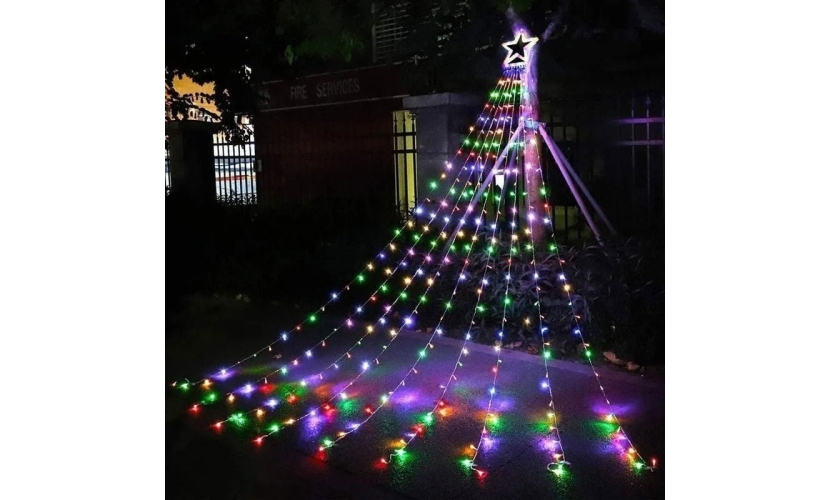 Χριστουγεννιάτικο δέντρο από φωτάκια θερμό χρώμα LED 2.5m - Star waterfall light Ρυθμίζεται και αποθηκεύεται πολύ εύκολα και γρήγορα. Βάλτε το στην πρίζα και τα φώτα led θα ζεστάνουν τον χώρο σας. Ύψος: 2.5m Χρώμα φώτων: πολύχρωμα