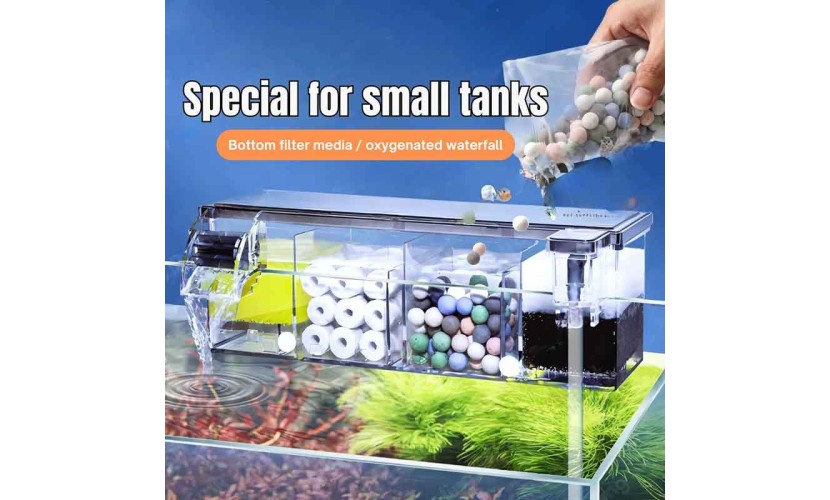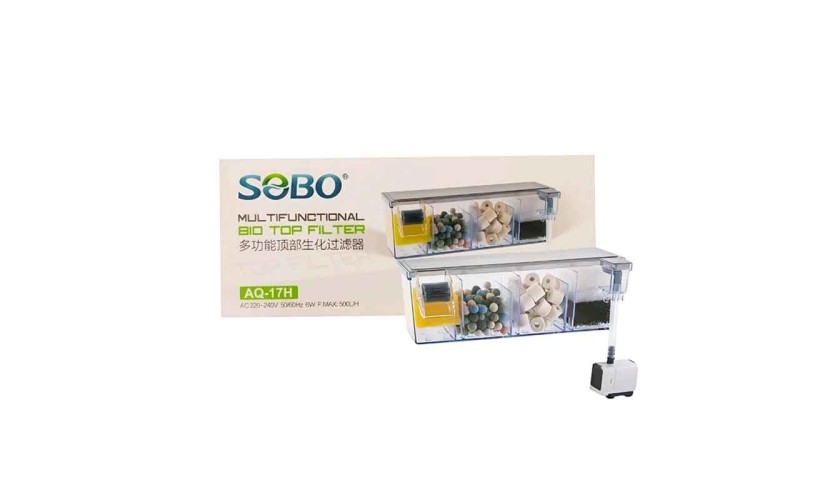 Το SOBO AQ‑17H είναι ένα συμπαγές, κορυφαίας τοποθέτησης (top‑mount) φίλτρο για ενυδρεία, σχεδιασμένο για αποδοτική πολυβάθμια φίλτρανση (μηχανική και βιολογική) και βελτιωμένη οξυγόνωση μέσω καταρράκτη με υδροτροχό. Ακολουθούν μερικά βασικά χαρακτηριστικά και πλεονεκτήματα: