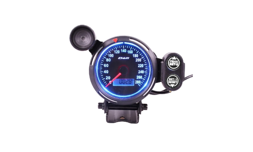 Διάμετρος: 80mm Χρώμα πλαισίου : Μαύρο Με λυχνία MPH, shift light Με οθόνη LCD, μπλε LED Με Shift Light, Stepper Motor, W/Warning & Peak. Υπάρχουν τρεις διαφορετικές έγχρωμες οθόνες οπίσθιου φωτισμού LED σε ένα μετρητή: λευκό, πορτοκαλί κόκκινο και μπλε Το ταχύμετρο έχει σχεδιαστεί για χρήση μόνο με κινητήρες 4, 6, 8 κυλίνδρων Χρώμα LED Λευκό, Κόκκινο, Μπλε Σχεδιασμός Stepper κινητήρα Διάμετρος 80mm Εύρος 0-280 Ενίσχυση/Τροποποίηση προβλεπόμενης χρήσης