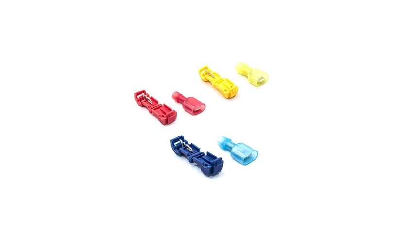 Όχι άλλες συγκολλήσεις, κοπές ή αφαίρεση καλωδίων για γρήγορη διόρθωση ή σύνδεση. Οι T-tap σύνδεσμοι καλωδίων θα συνδέσουν γρήγορα και με ασφάλεια δύο καλώδια χωρίς καθόλου προσπάθεια! Δημιουργεί μία ασφαλή και σταθερή σύνδεση μεταξύ δύο καλωδίων Αποτρέπει το καλώδιο από την αφαίρεση Διαφορετικά χρώματα συνδέσμων T-tap για διαφορετικούς τύπους καλωδίων (περισσότερες πληροφορίες στις εικόνες παραπάνω) Εξαίρετο για γρήγορες, μακροχρόνιες διορθώσεις Όχι άλλη συγκόλληση Μέγιστη θερμοκρασία λειτουργίας: 105°C Έρχεται σε εύχρηστο κουτί