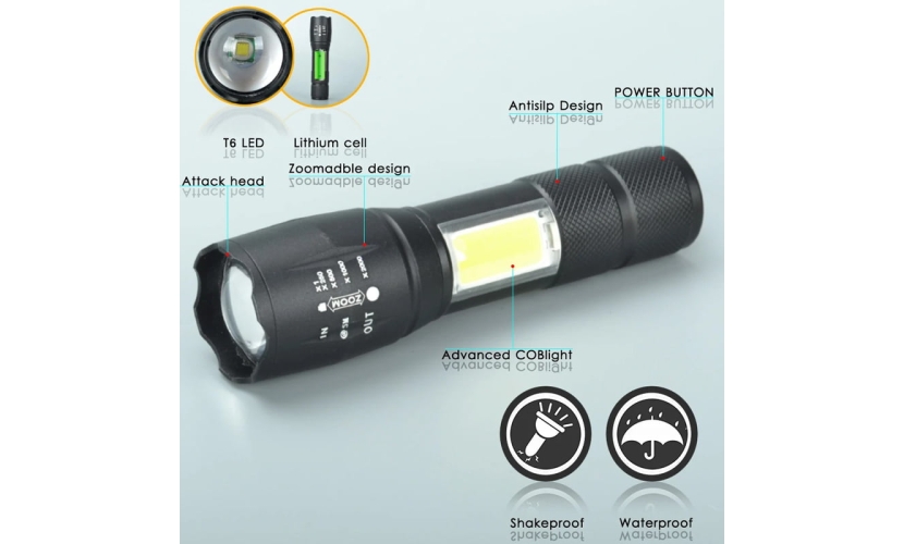 Επαναφορτιζόμενος Φακός LED - COB light flashlight