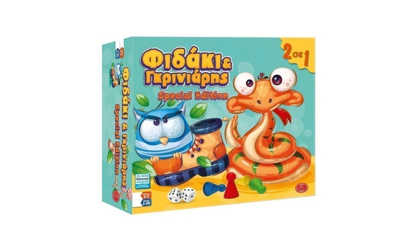 Τα 2 κλασσικά και αγαπημένα παιχνίδια όλων, το Φιδάκι και ο Γκρινιάρης. Ενα επιτραπέζιο παιχνίδι για 2-6 παίκτες. Κατάλληλο για ηλικίες 6 ετών +.
