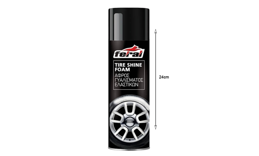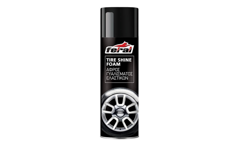 Αφρός Γυαλίσματος & Συντήρησης Ελαστικών Feral 500ml Ο αφρός γυαλίσματος ελαστικών Feral είναι ένα προϊόν με μοναδική σύνθεση που καθαρίζει, γυαλίζει και προστατεύει τα ελαστικά του αυτοκινήτου.Απομακρύνει εύκολα και γρήγορα τις βρωμιές και στεγνώνει αμέσως, δίνοντας μοναδική λάμψη χωρίς να χρειάζεται επίμονο τρίψιμο. Τέλος, είναι φιλικό προς τα μεταλλικά μέρη του αυτοκινήτου, όπως ζάντες, τάσια, και αμάξωμα. ΟΔΗΓΙΕΣ ΧΡΗΣΗΣ Ξεπλύνετε καλά τα ελαστικά σας απομακρύνοντας λάσπες και χώματα Ανακινήστε καλά την φιάλη και έπειτα ψεκάστε ομοιόμορφα τα ελαστικά αφήνοντας το προϊόν να δράσει για λίγα λεπτά χωρίς να ξεπλύνετε ή να σκουπίσετε. Για καλύτερο αποτέλεσμα χρησιμοποιήστε σαμπουάν Feral για τον καθαρισμό του αυτοκινήτου σας. Το προϊόν ψεκάζεται στο ελαστικό. Δεν απαιτείται κάποιο εργαλείο