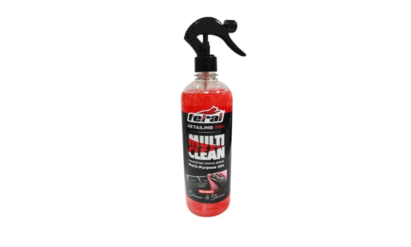 Το Feral Multi Clean είναι ένα πανίσχυρο καθαριστικό γενικής χρήσης με αντιστατικούς παράγοντες, σχεδιασμένο για να απομακρύνει ακόμη και τους πιο δύσκολους λεκέδες. Κατάλληλο για χρήση στο αυτοκίνητο αλλά και στο σπίτι, προσφέρει άψογη καθαριότητα και φρεσκάδα.Έτοιμο προς χρήση: απλά ψεκάστε ομοιόμορφα στην επιφάνεια και σκουπίστε με στεγνό πανί ή χαρτί.Με δροσερό άρωμα εσπεριδοειδών, αφήνει τις επιφάνειες καθαρές και λαμπερές.