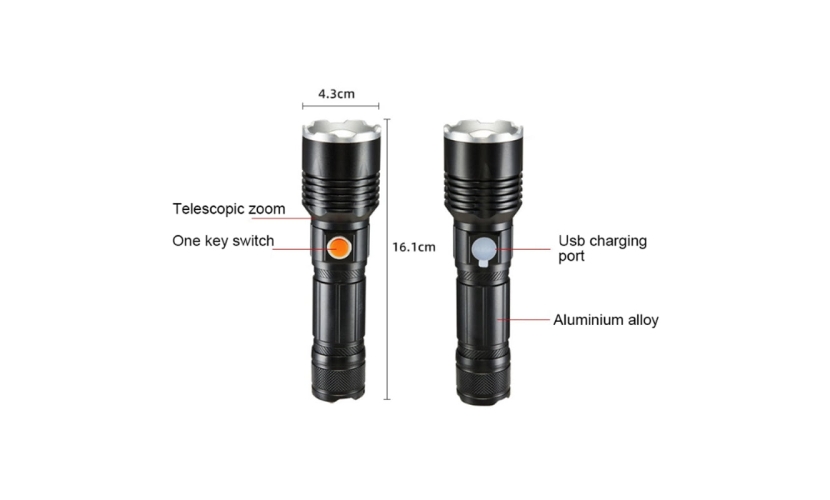 Andowl Επαναφορτιζόμενος Φακός Led 2000mAh με 5 λειτουργίες με δυνατότητα ζουμ L660 - Aluminum Alloy Strong Light Flashlight