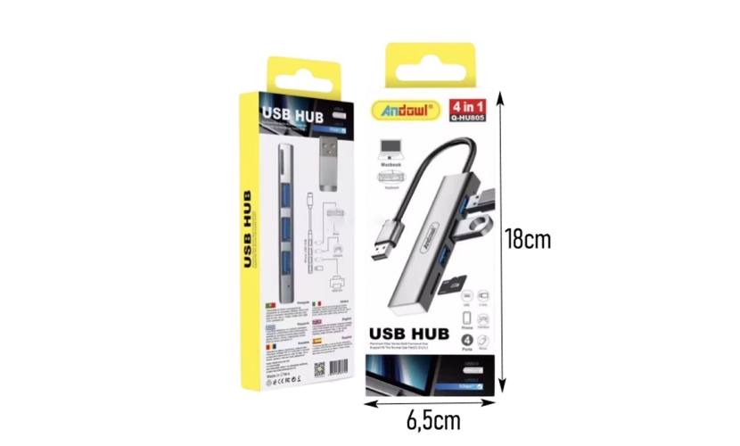 Το USB Hub Andowl 4 σε 1 προσφέρει την ιδανική λύση για να επεκτείνετε τις θύρες σύνδεσης του υπολογιστή ή του laptop σας. Διαθέτει 4 θύρες USB που σας επιτρέπουν να συνδέσετε ταυτόχρονα διάφορες συσκευές, όπως πληκτρολόγιο, ποντίκι, USB stick, smartphone και άλλα αξεσουάρ.