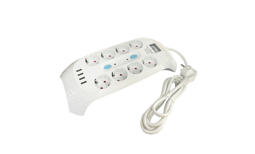 Πολύμπριζο 4 Θέσεων με καλώδιο 2 μέτρα 10Α/250V-2500W. 4 θύρες USB Ιδανικό για το σπίτι και το γραφείο.