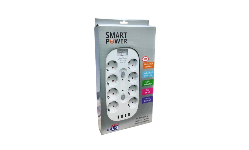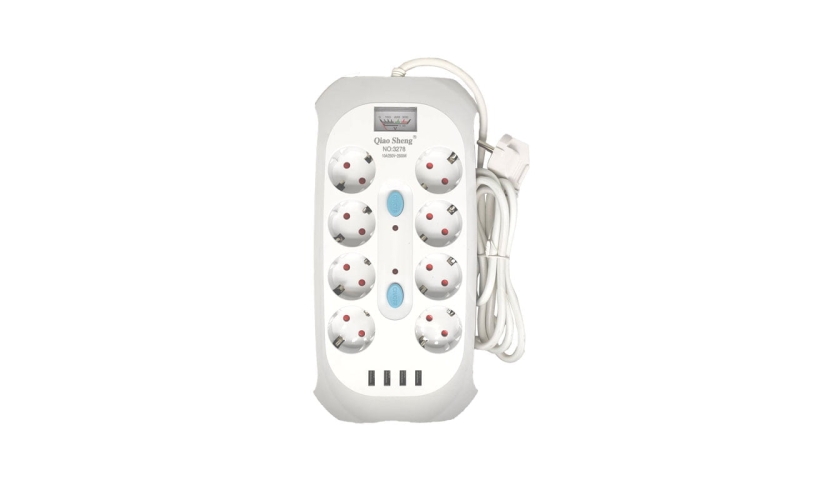 Qiao Sheng Πολύμπριζο 8 Θέσεων 10Α/250V-2500W 2m NO:3278 - Smart power 8 power socket