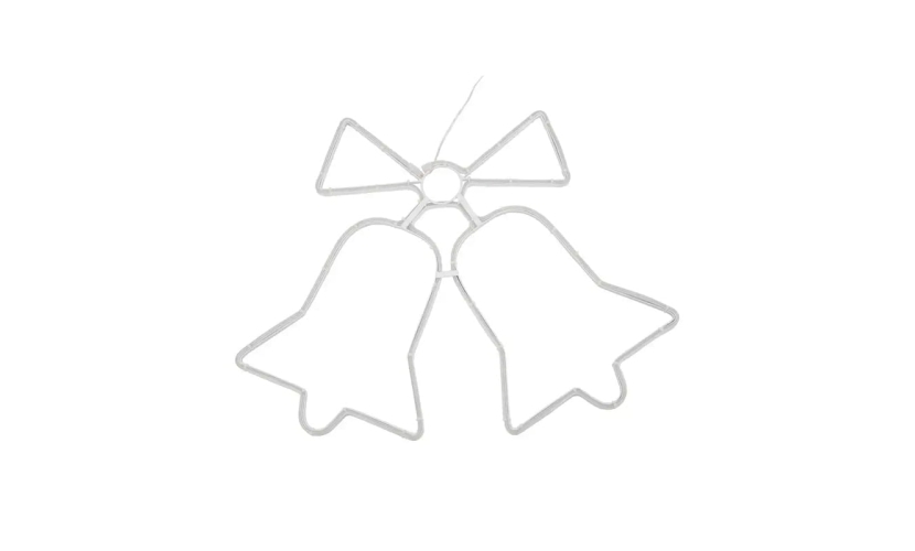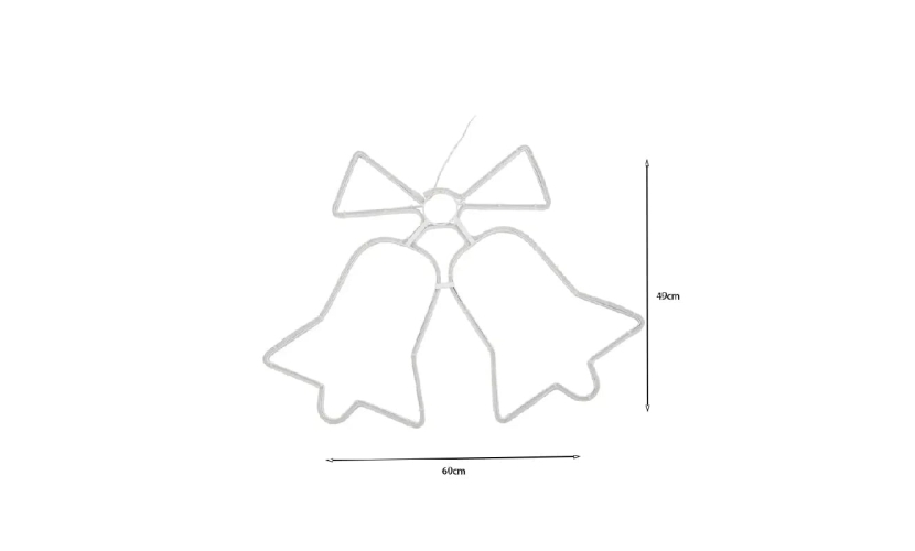 Διακοσμήστε τον χώρο σας με αυτό το εντυπωσιακό φωτεινό διακοσμητικό σε σχήμα διπλές καμπάνες με φιόγκο, που φωτίζει με καθαρό, ψυχρό φως LED.