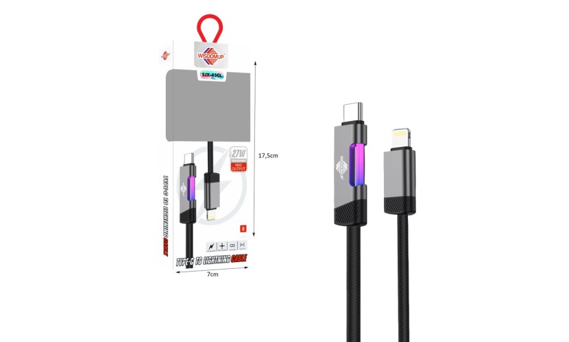 Σύγχρονο καλώδιο φόρτισης USB-C σε Lightning με ενσωματωμένο φωτισμό LED, που συνδυάζει υψηλή απόδοση και εντυπωσιακό σχεδιασμό. Υποστηρίζει γρήγορη φόρτιση έως 27W, ιδανικό για συσκευές Apple που απαιτούν ταχύτητα και αξιοπιστία.
