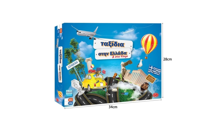 Γνώρισε την Ελλάδα και την Κύπρο ταξιδεύοντας. Επιτραπέζιο που βοηθάει να αποκτήσει το παιδί γνώσεις γεωγραφίας. Παίζεται με 2 έως 6 παίκτες. Ηλικίας 8+ ετών.