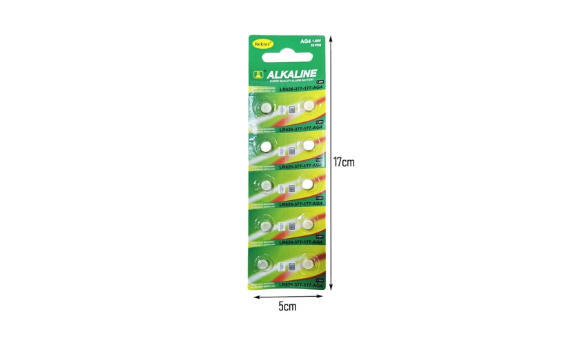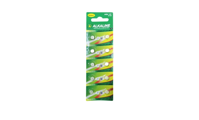 Σετ αλκαλικών μπαταριών LR626 1.5V, ιδανικές για μικροσυσκευές όπως ρολόγια, αριθμομηχανές, λέιζερ, ηλεκτρονικά παιχνίδια και άλλα gadget. Παρέχουν σταθερή και αξιόπιστη παροχή ενέργειας με μεγάλη διάρκεια ζωής, εξασφαλίζοντας την απρόσκοπτη λειτουργία των συσκευών σας. Χαρακτηριστικά προϊόντος: Τύπος: LR626 / AG4 / 177 / 377 Τάση: 1.5V Τεχνολογία: Αλκαλική Σετ: 10 τεμάχια Υψηλή ποιότητα και σταθερή απόδοση Κατάλληλες για ρολόγια, αριθμομηχανές, φακούς, παιχνίδια και άλλες μικρές ηλεκτρονικές συσκευές Ένα οικονομικό και αξιόπιστο σετ αλκαλικών μπαταριών που εξασφαλίζει συνεχή ενέργεια για τις καθημερινές σας ανάγκες.