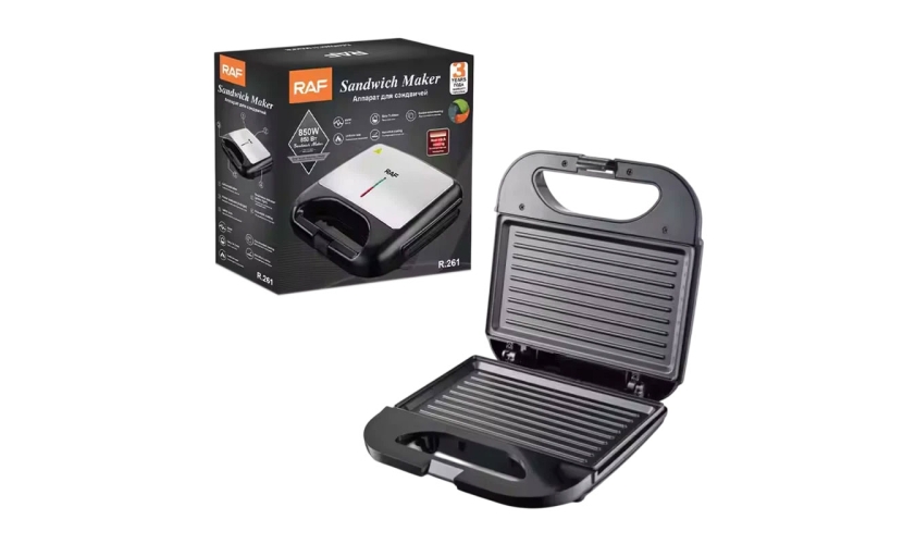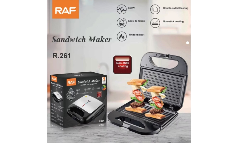 Η τοστιέρα RAF R.261 συνδυάζει ισχύ 850W με αντικολλητικές πλάκες για να ετοιμάζετε γρήγορα και εύκολα τοστ, σνακ και μικρά γεύματα. Ο εργονομικός σχεδιασμός και η διπλής όψης θέρμανση εξασφαλίζουν ομοιόμορφο ψήσιμο, ενώ η αντικολλητική επίστρωση επιτρέπει εύκολο καθάρισμα.